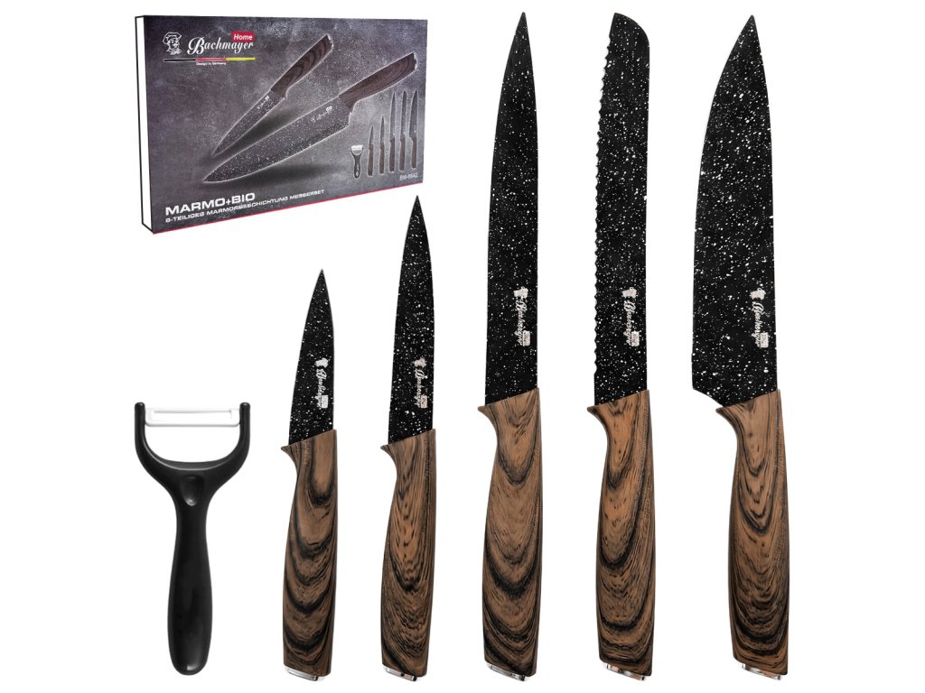 Bachmayer Sada kuchyňských nožů 6 ks, BM-6642 – mramorovo-hnědá