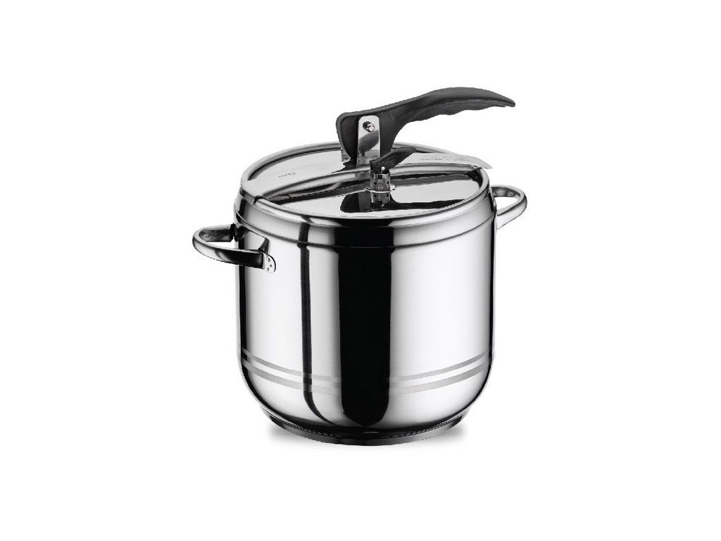 Praktický pákový tlakový hrnec o objemu nádoby 3,5 l, 5 l, 7 l, 9 l, 12 l, 14 l a 17 litrů se řadí mezi kompaktní hrnce, které vynikají jednoduchým moderním vzhledem a léty ověřenou konstrukcí. Hrnec je vyroben z vysoce kvalitní nerezavějící oceli 18/10. Výhodou je především kvalita zpracování a dlouhodobá využitelnost. Tato nerezavějící ocel patří mezi nejlepší, ale i dobře vypadá a navíc s ní nejsou problémy při čištění a udržování.