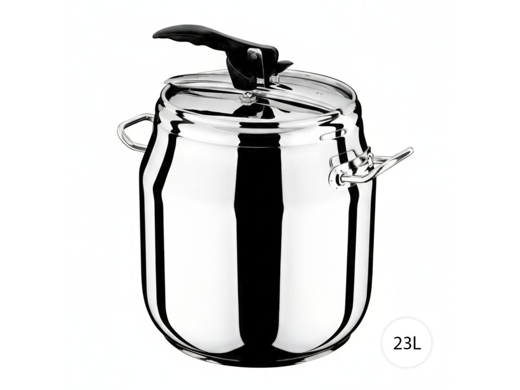 Tlakový hrnec s pákovým mechanismem a objemem 20 litrů patří mezi kompaktní modely s jednoduchým moderním vzhledem a osvědčenou konstrukcí. Vyrobený z vysoce kvalitní nerezové oceli 18/10 nabízí špičkovou kvalitu zpracování, dlouhou životnost a atraktivní vzhled. Funguje na principu zvýšeného tlaku, kdy teplota dosahuje 120–140 °C, což zkracuje dobu vaření oproti klasickým hrncům (např. brambory jen 5–10 minut místo 30 minut).