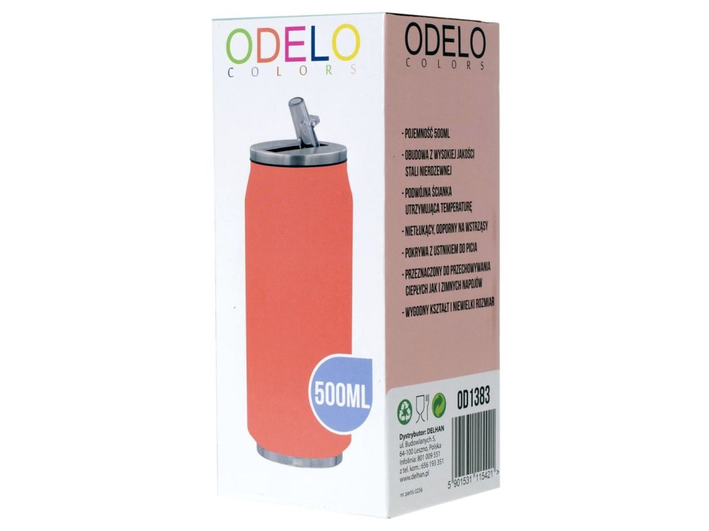 Termohrnek Odelo, OD1383 o objemu 0,5L, je vyroben z nejkvalitnější nerezavějící oceli 18/10. Termohrnek má brčko a uzávěr s náustkem. Vyrobený z vysoce kvalitního plastu, brání nečekanému otevření. Materiálové provedení činí hrnek téměř nerozbitný. Vhodný pro použití v domácnosti, v práci, na cestování, pro děti nebo v autě. Hodí se do většiny držáků v automobilech. Víko hermetický uzavře hrnek a udrží teplotu nápoje mnoho hodin. Dvojitá izolační vrstva trvale uchová teplotu vašeho nápoje. Hodí se pro horké i studené nápoje. Víko je opatřen silikonovým těsné. Hrnek je vhodný do myčky nádobí.