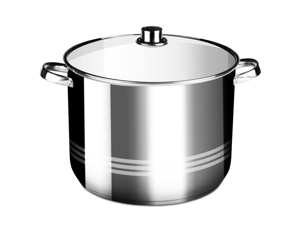 Nerezový hrnec se skleněnou poklicí Perfect Home 10340 o objemu až 9 litrů. Používání na plynové, sklokeramické, elektrické a indukční sporáky.