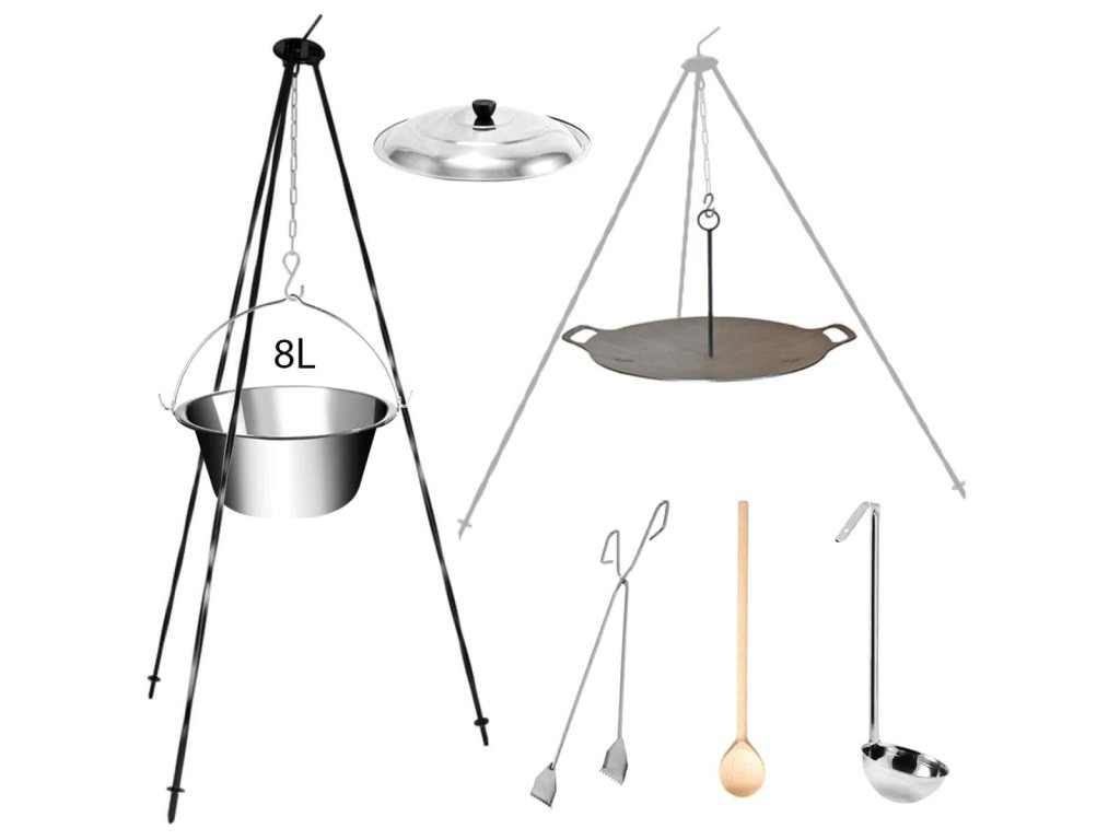 Kotlíková souprava Perfect Home Set-174 je souprava, která se skládá z trojnožky, kotlíku, poklice, plátu, kleští, vařečky a naběračky. Vše potřebné pro vaření guláše, zelňačky a grilování.