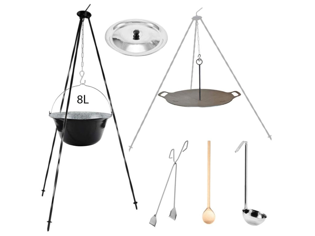 Kotlíková souprava Perfect Home Set-175 je souprava, která se skládá z trojnožky, kotlíku, poklice, plátu, kleští, vařečky a naběračky. Vše potřebné pro vaření guláše, zelňačky a grilování.