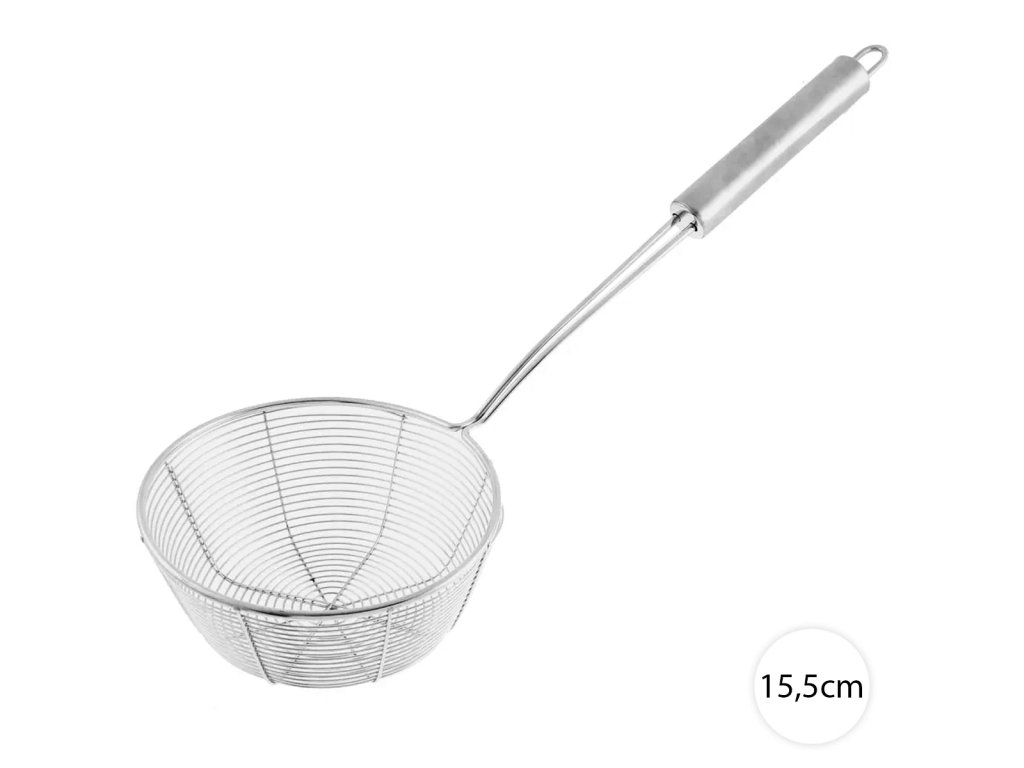 Toto sítko na smažení se hodí k vytahování potravin z připravovaných jídel, ale pohodlně s ním také promícháte pokrm během přípravy. Jako sítko do fritézy umožňuje bezpečné vyjímání smažených potravin a cezení oleje. Pěnovačka na potraviny je také vynikající pro odstranění pěny z vývaru nebo polévky.