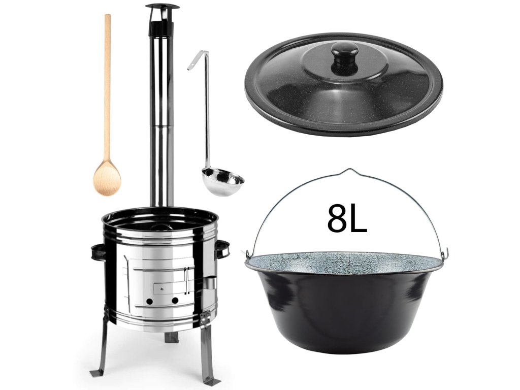 - Kotlíkový set na guláš sestává z kotliny, kotlíku, poklice, vařečky a naběračky