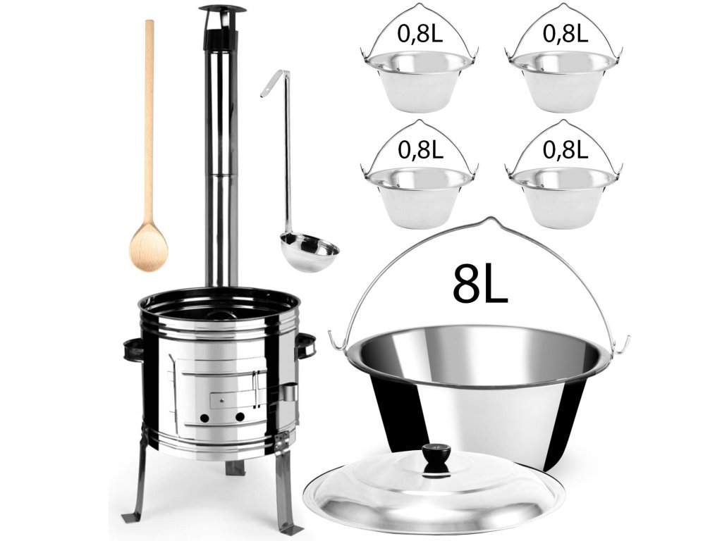 - Kotlíkový set na guláš sestává z kotliny, kotlíku, poklice, vařečky, naběračky a servírovacích kotlíků