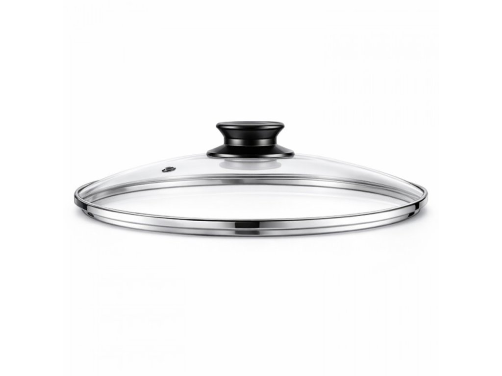 Skleněná poklice 18cm od značky Perfect Home s otvorem pro páru, nerezovým okrajem a plastovou rukojetí. Vhodná na hrnce i pánve o průměru 18cm. Odolná vůči vysokým teplotám.
