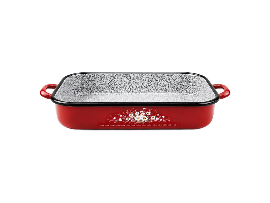 Perfect Home smaltovaný pekáč o rozměrech 36×24×7 cm je vyroben ze smaltovaného ocelového plechu, díky čemuž je odolný proti oděru a poškrábání, skvěle drží teplo a snadno se čistí. Ideální pro pečení masa, zeleniny a zapékaných pokrmů, s pohodlnými ergonomickými rukojeťmi pro bezpečné přenášení. Vhodný do plynových i elektrických trub a svým univerzálním designem zapadne i do retro kuchyně.