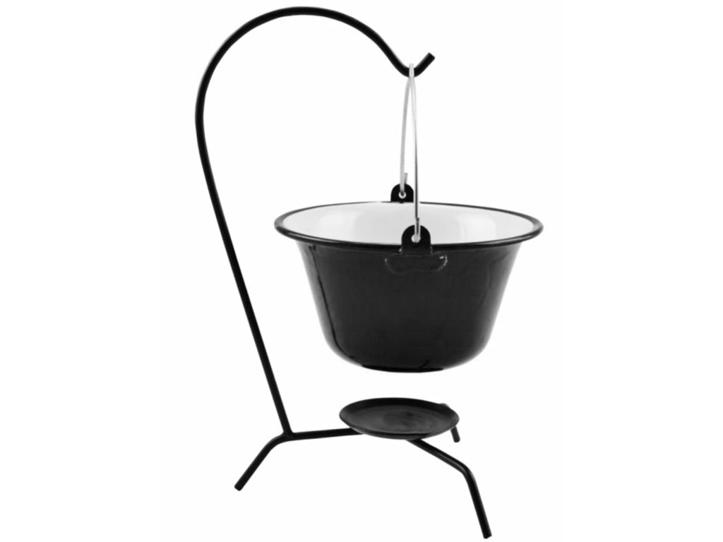 Rádi opékáte a vaříte nad ohněm pod širým nebem? Smaltovaný kotlík na guláš Perfect Home 87710 je vhodný i na zavěšení.