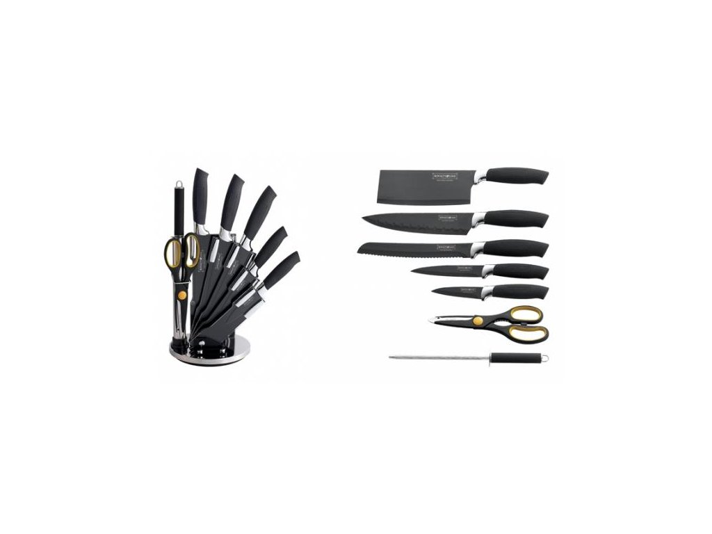 Royalty Line RL-BLK8-W 8-dílná sada nožů v praktickém stojanu, černá