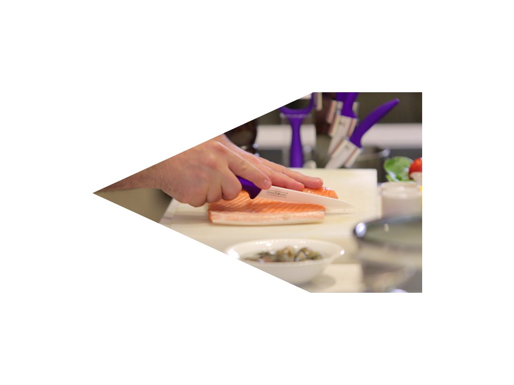 OSTŘENÍ: při správném používání zůstávají čepele po dlouhou dobu ostré a není nutné broušení nožů jako u nožů z oceli. NEPOUŽÍVEJTE ostřičky pro kovové nože.