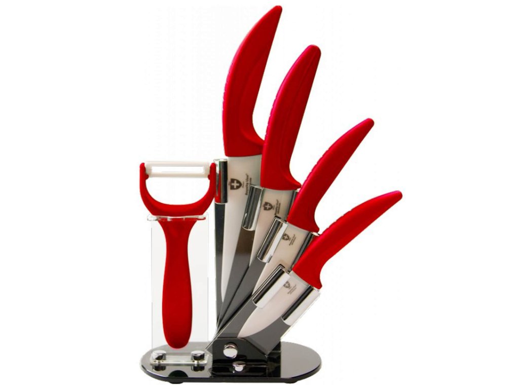 Royalty Line RL-C4ST-1123 5-dílná sada nožů, keramické nože se škrabkou, červená