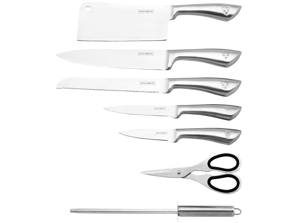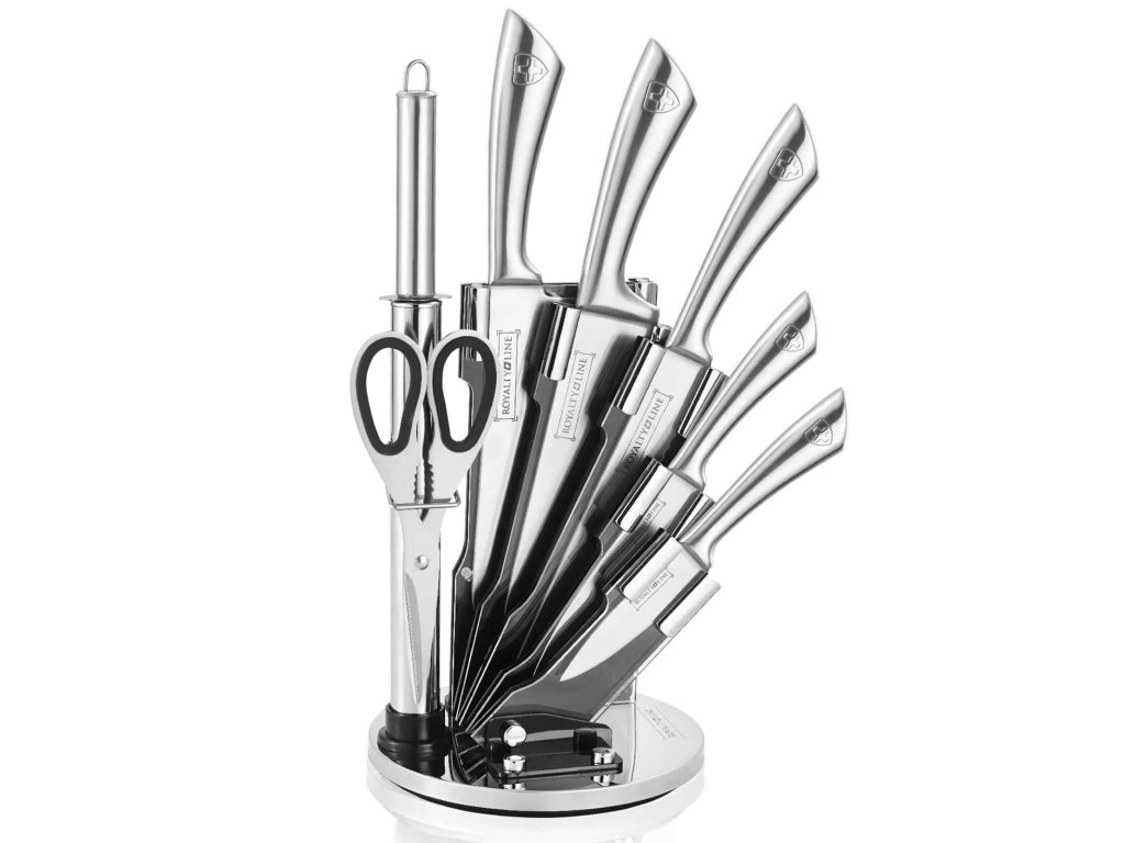 Royalty Line RL-KSS600 8-dílná sada nožů v praktickém stojanu, stříbrná