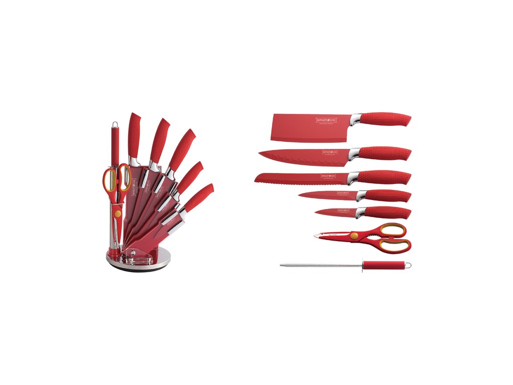 Royalty Line RL-RED8-W 8-dielna sada nožov v praktickom stojane, červená