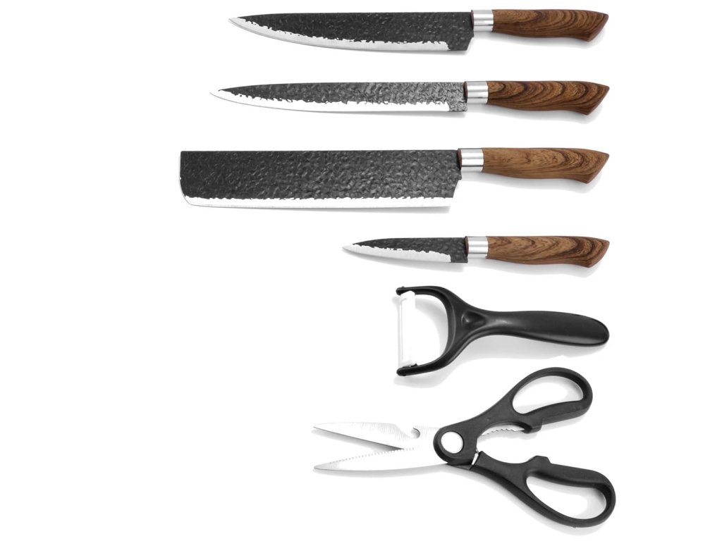 - Kompletní sada nožů s blokem pro všechny úkoly: od krájení masa po zeleninu.