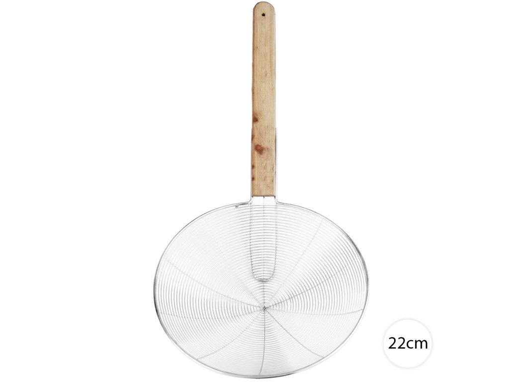 TIDAL No.1825-L Pěnovačka, Naběračka, sítko do kotlů s průměrem 22 cm, vhodná při zabijačkách, na vybírání masa, škvarků nebo brambor z kotliny. Rukojeť je dřevěná. Díky jejím rozměrům se při vyjímání masa či zeleniny nezdržíte.
