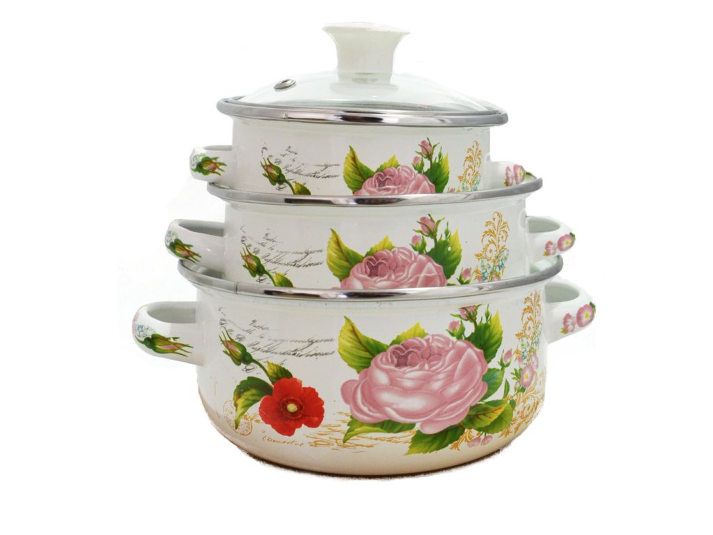 TIDAL SD-0679-121 Smaltované hrnce, 3 ks, vzor kvety2