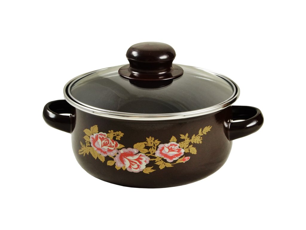 TIDAL Smaltované hrnce KVĚTY, 1/1,5/2/3/4L, 10ks, hnědé, TD-9793