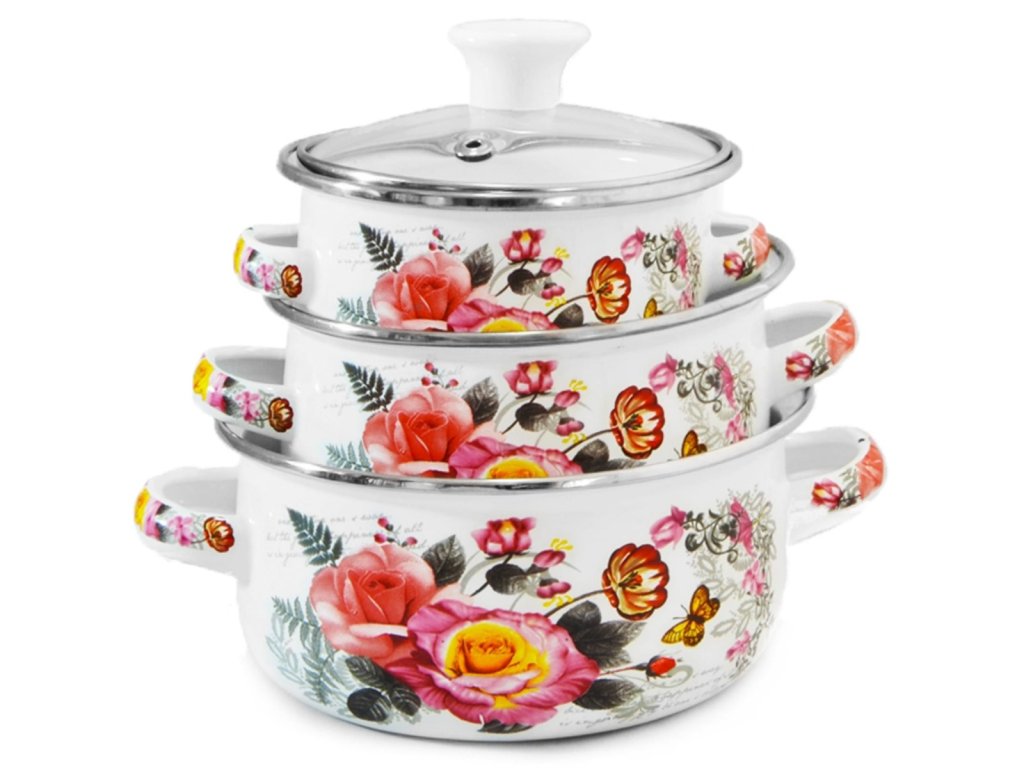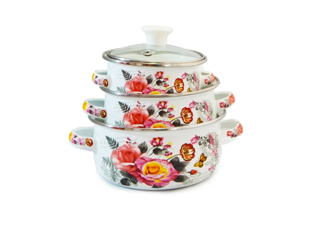 TIDAL TD-9760 Smaltované hrnce 3ks, 0,5/0,8/1,1 L, vzor květiny1