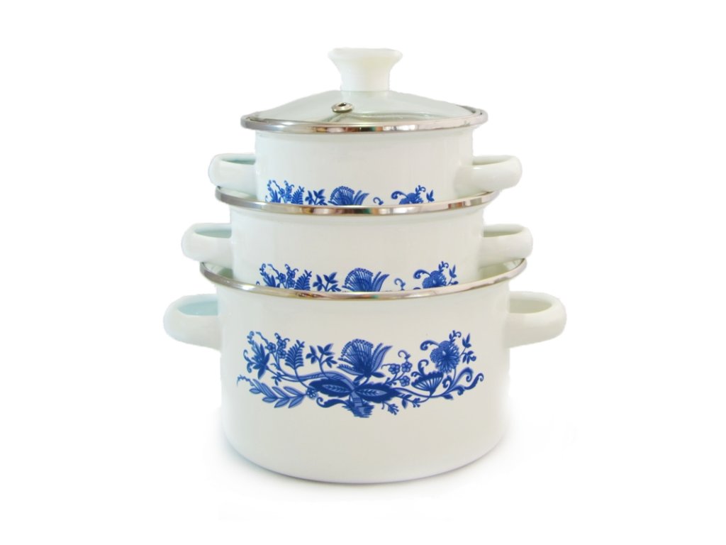 TIDAL TD-9761 Smaltované hrnce, 3 ks, vzor modranská keramika